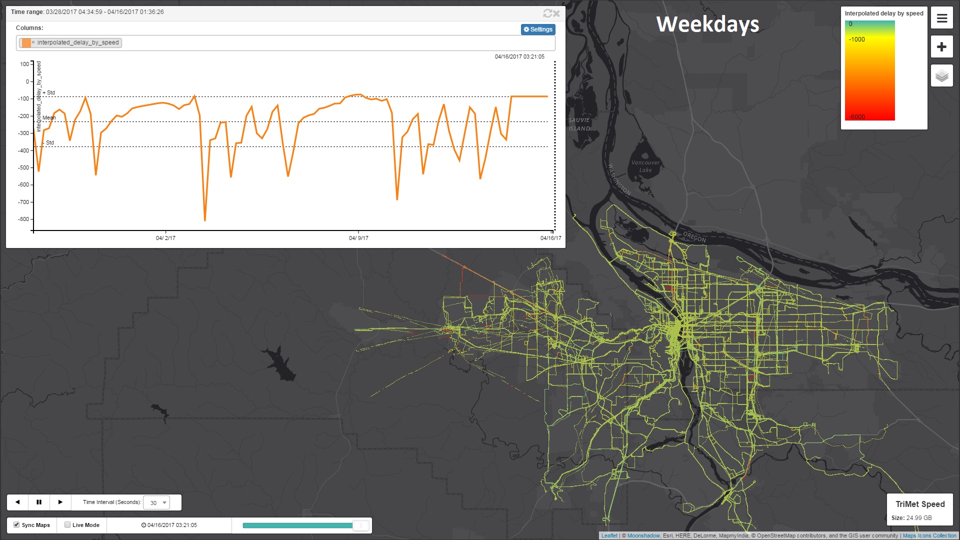 Figure 1. SpeedMap; TriMet buses record their speed every five seconds.