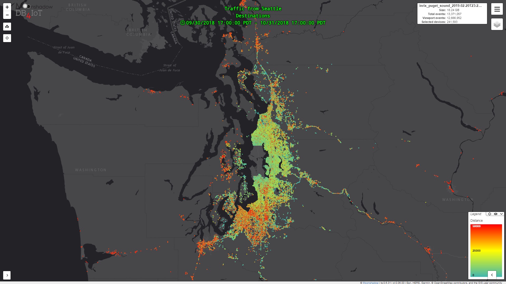 DB4IoT Transportation Data for GHG Reporting from Moonshadow provides detailed insight into the travel activity patterns in cities, metro areas and counties and can be used by consultants and local governments to gain a deeper understanding of when and where transportation is generating the most emissions.